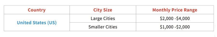 米国では、高齢者住宅の賃料は都市ごとに変わります。ニューヨークやサンフランシスコのような大都市では、月額2,000ドルから4,000ドルを支払うことを期待してください。小都市では通常賃料は1,000ドルから2,000ドルです。
